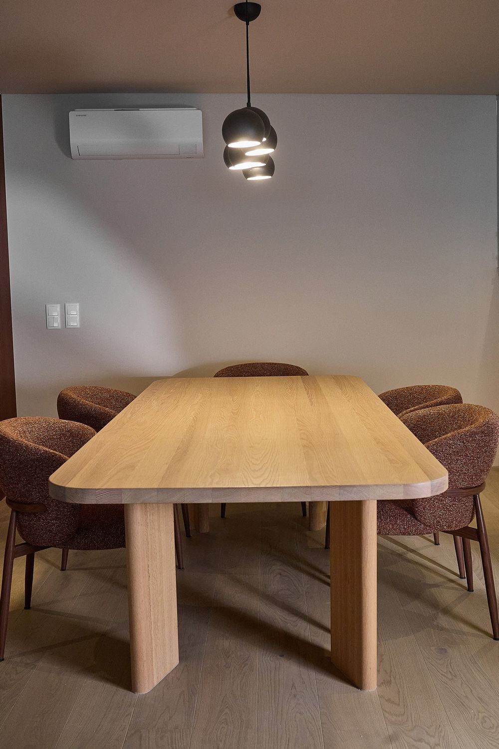 Designed as a central gathering element, the table combines durability, craftsmanship, and timeless aesthetics — ideal for modern residential interiors.